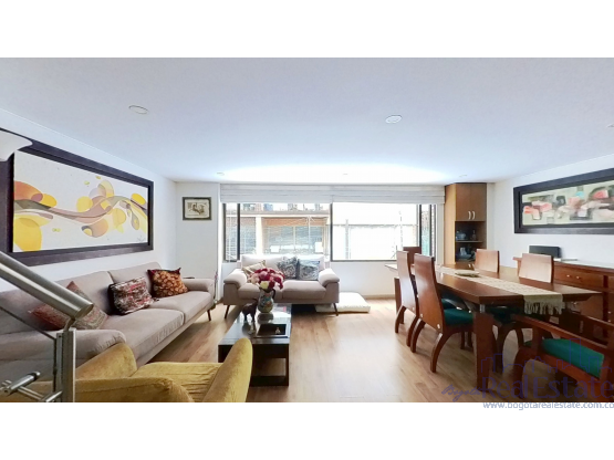 El inmueble ofrece una distribución generosa y funcional, con cuatro habitaciones, tres baños, estudio, sala de estar y una cocina integral que se integra armónicamente a las áreas sociales. Los pisos laminados aportan calidez y elegancia, mientras que la remodelación realza el confort y el diseño de los espacios.